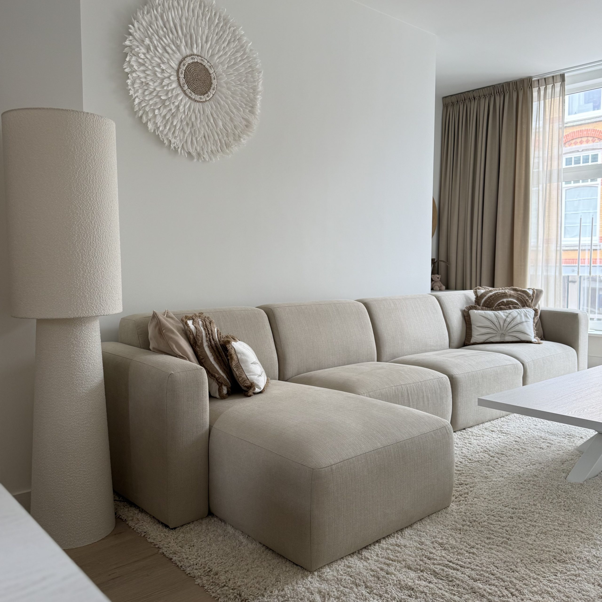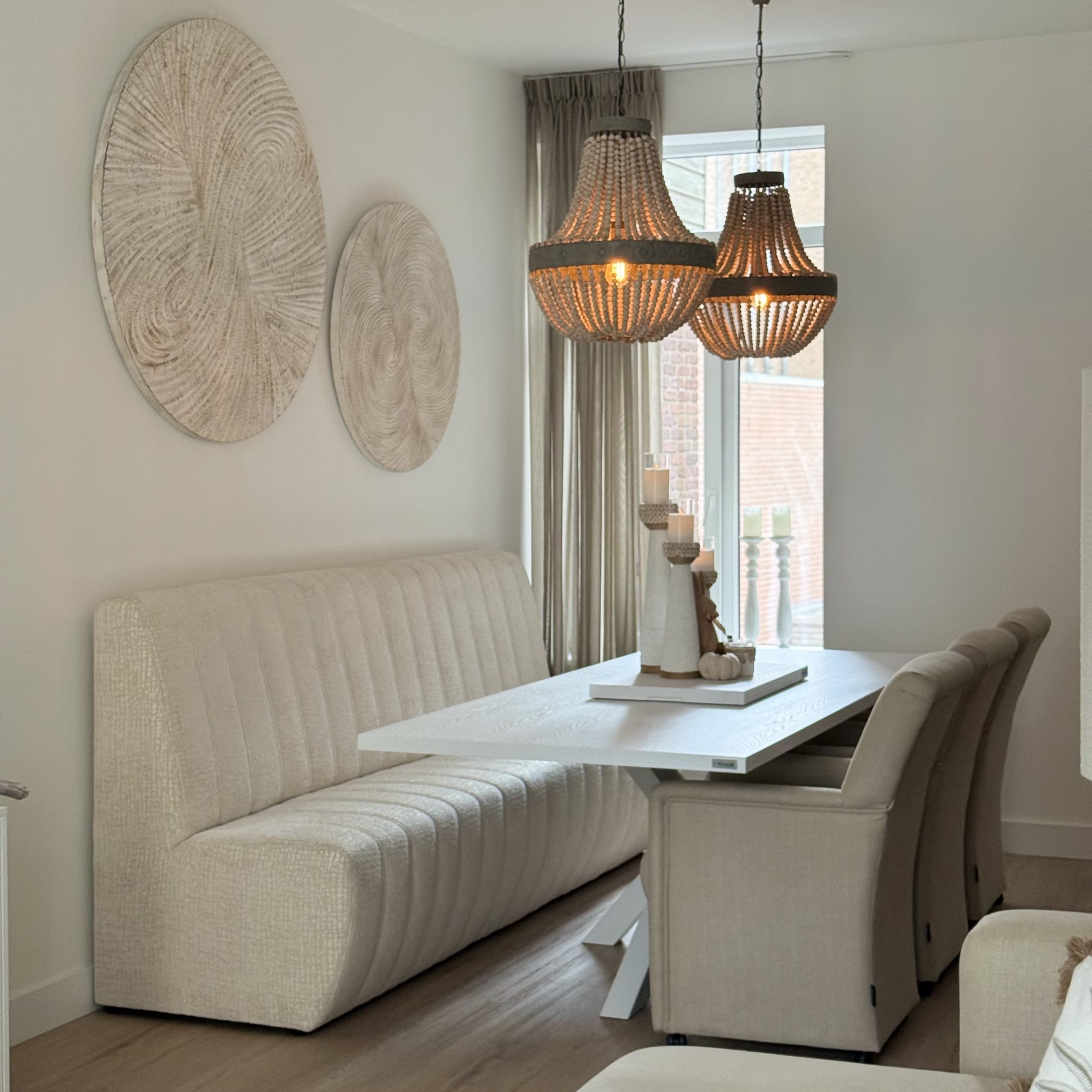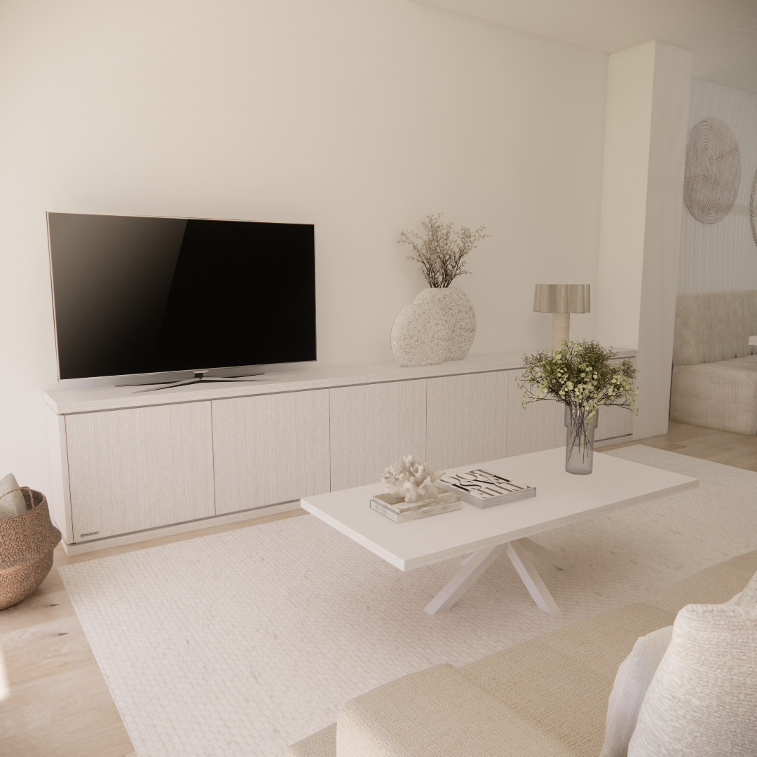 Zachte, natuurlijke tinten, lichte houtsoorten en rijke texturen vormen de basis en zorgen voor een ontspannen en gebalanceerd geheel. Het ontwerp vertaalt het strandgevoel op een verfijnde manier naar een eigentijds interieur.
