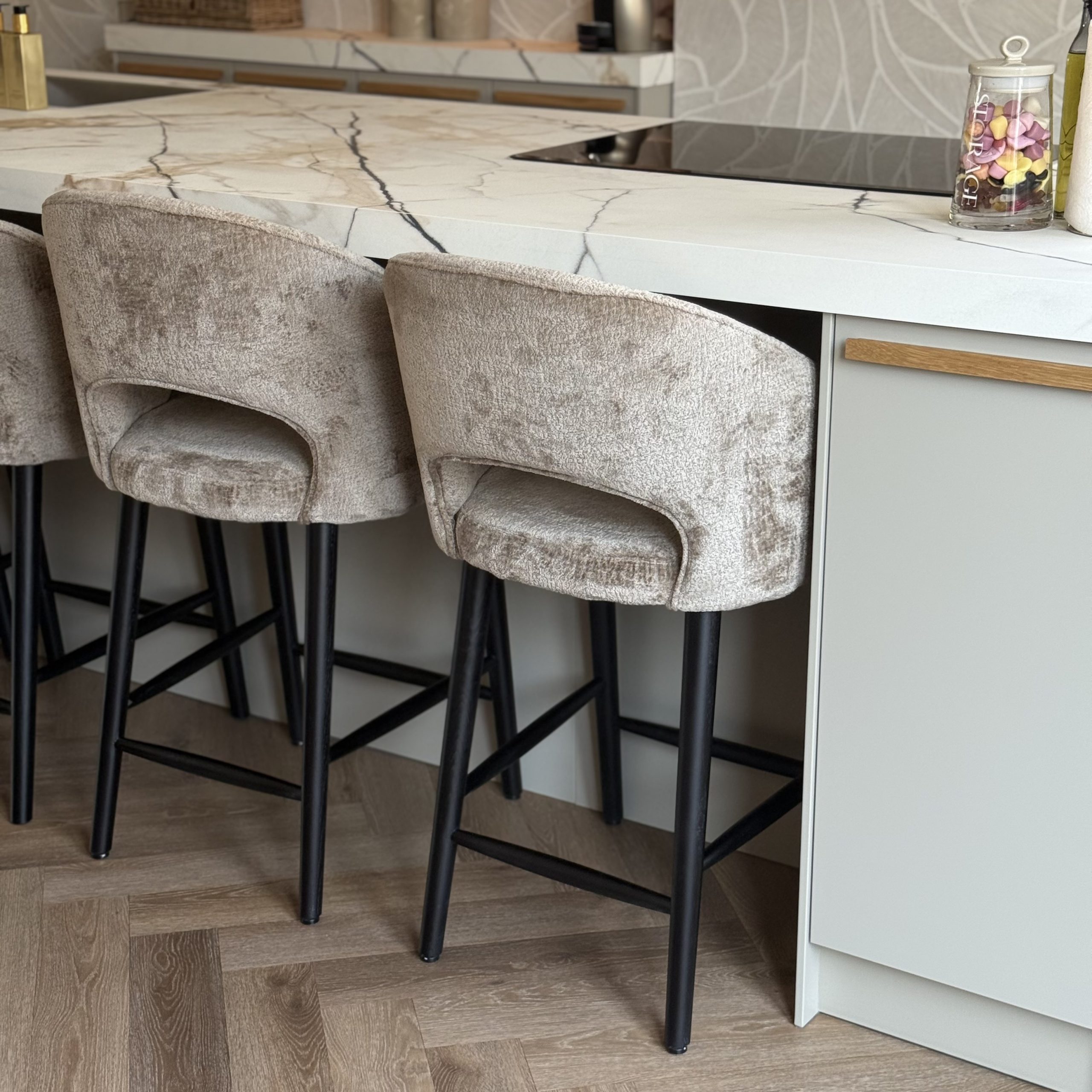 In combinatie met een zorgvuldig geselecteerd palet van warme, natuurlijke tinten en rijke materialen ontstaat een interieur dat rust uitstraalt, maar tegelijkertijd een zekere diepte en elegantie behoudt. Alles is op elkaar afgestemd met oog voor detail, verhoudingen en textuur.